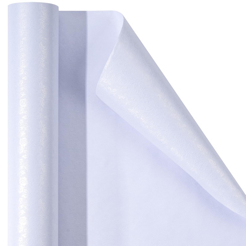 RUSPEPA White Pearly Luster Wrapping Paper with Small Embossed Rose - Mini Roll - Perfect for Wedding, Holiday and More - 17 Inches X 16.5 Feet