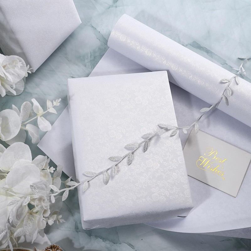 - Design: Pearly luster wrapping paper with white small embossed rose, make the gift wrapping be more eye-catching