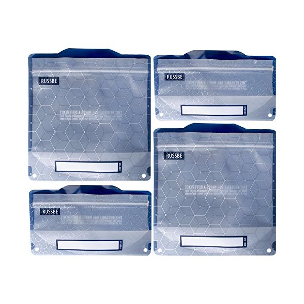 Russbe Metallic Hexagrid Reusable Snack & Sandwich Bags (Set Of 4), Blue