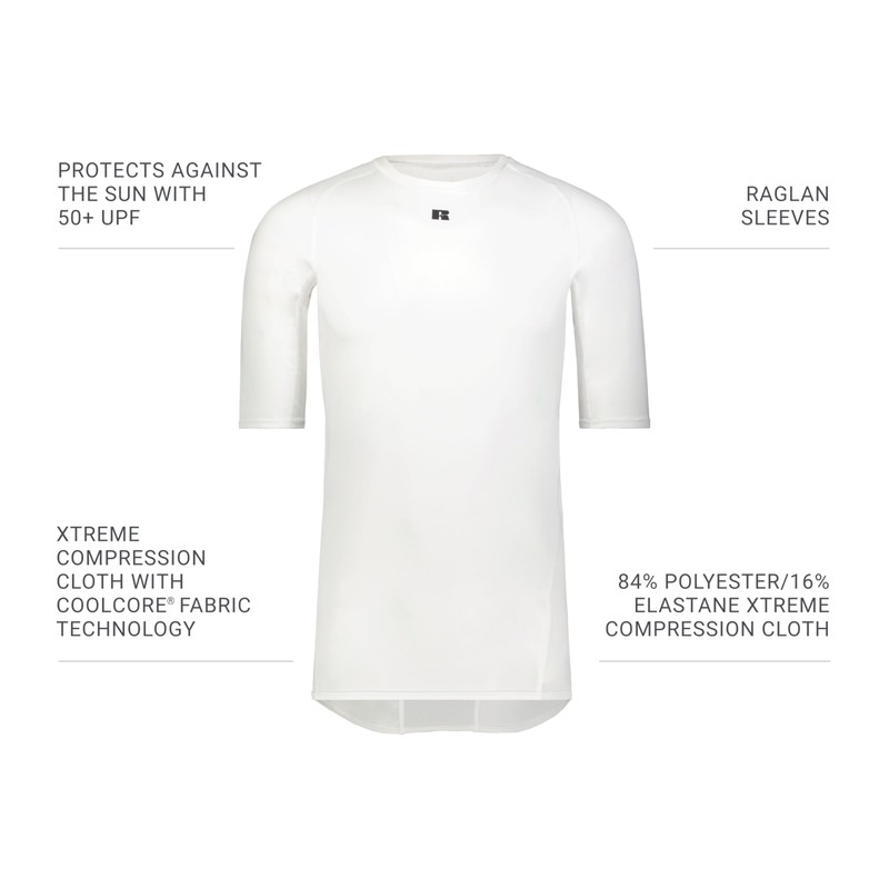 Russell Athletic Men's Standard Half Sleeve Compression Tee, White, 3X-Large