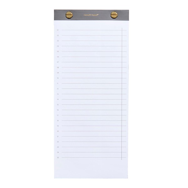 russell+hazel Riveted Paper List Pad, Office Supplies, Charcoal with Gold Accents, 4" x 9”, 80 Sheets