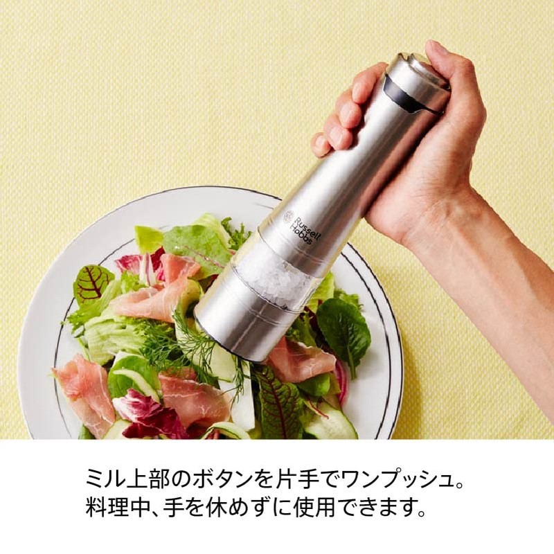 - Simply press the button on the top to grind automatically.One hand operation allows you to continue cooking without resting your other hand.
