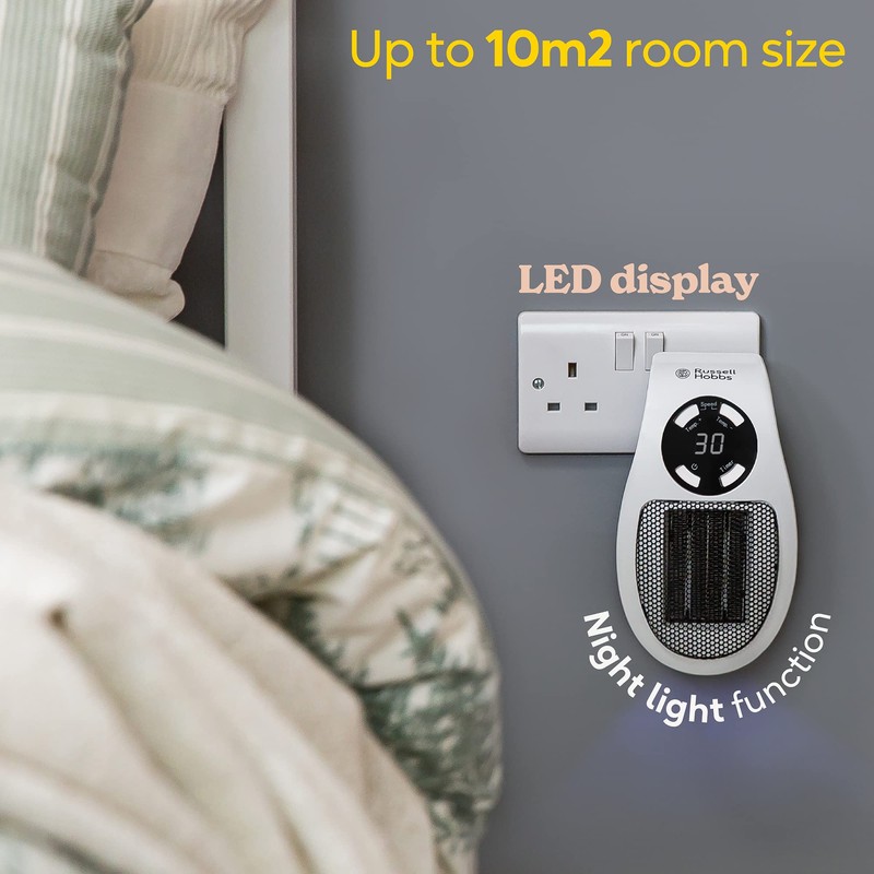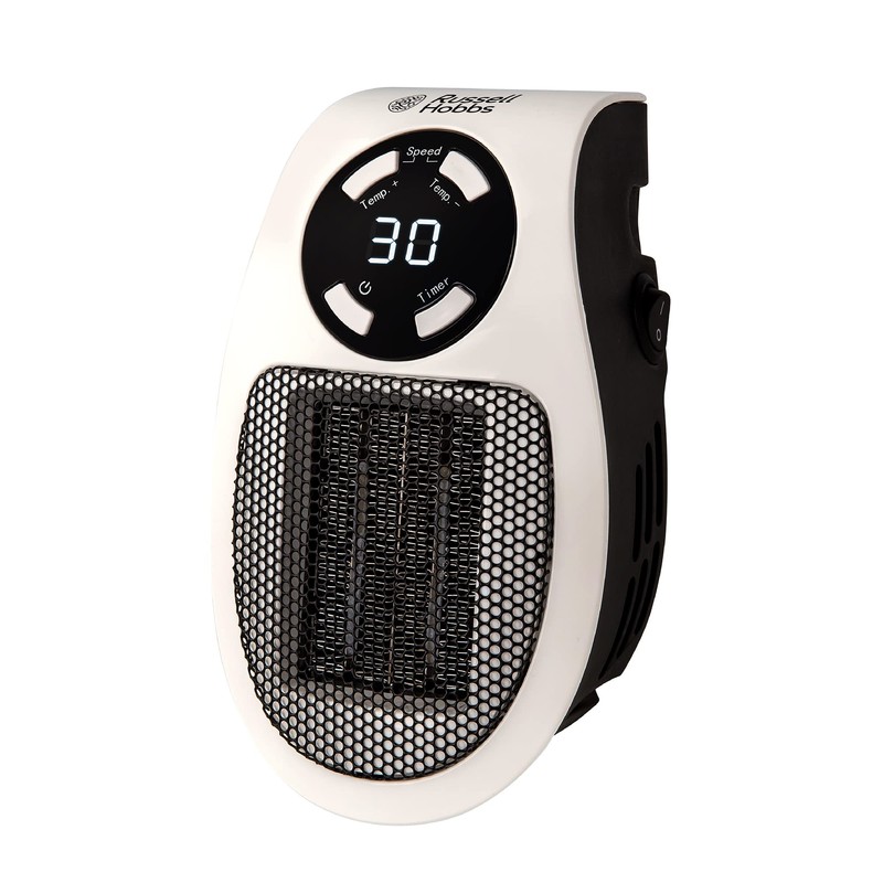 Russell Hobbs RHPH2001 500W Ceramic Plug Heater, Adjustable thermostat, 12 Hour Timer & LED Display, 2 Fan Speeds, 2 Year Guarantee , White