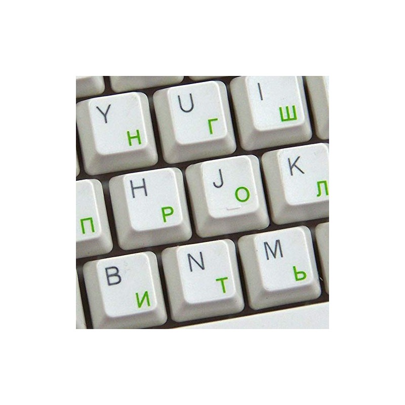 Russian Cyrillic Keyboard Labels Layout with Green Lettering Transparent Background