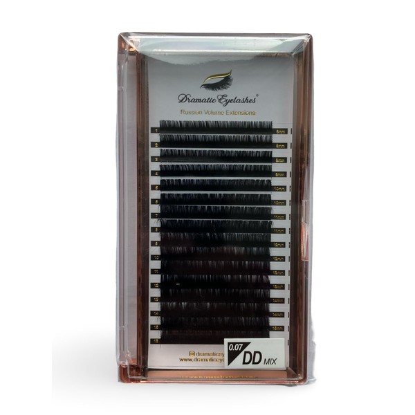 Russian Eyelash Extensions, 0.07, 16 Rows Mixed Tray 8-16mm, Curl: DD