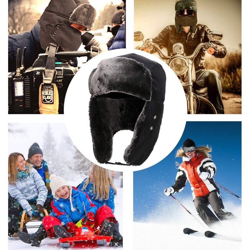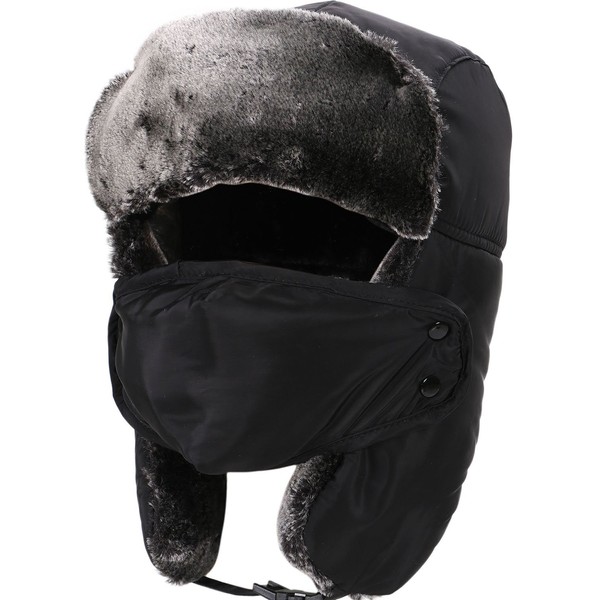 Russian Ushanka Hat Winter Hats for Men with Earflaps Hat and Face Mask,Black