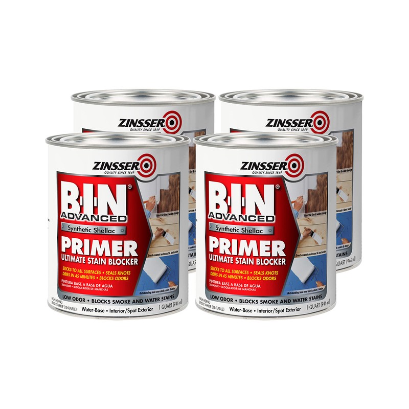 Rust-Oleum 271009 White Zinsser B-I-N Advanced Synthetic Shellac Primer, 1 Quart Can (Pack of 4)