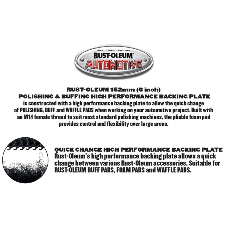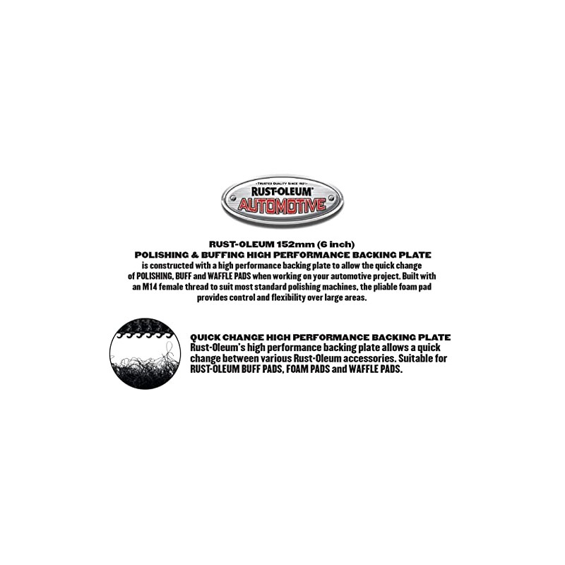 • High-Performance Backing Plate: Rust-Oleum's backing plate is engineered for superior performance, enabling quick and easy pad changes for polishing, buffing, and applying waffle pads to your automotive projects