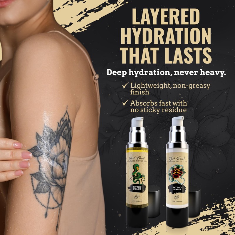 - COMPLETE TATTOO CARE KIT - The Rust Proof Complete Tattoo Care includes our Tattoo Primer (Skin Repair Oil) and Tattoo Sealer (Moisture Sealing Lotion) for full-spectrum care. Use them to keep tattooed skin hydrated, smooth, and supported before and after ink.