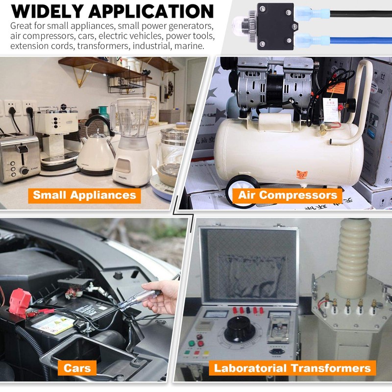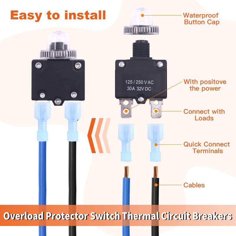 • 【Equipped with Practical Accessories】Our circuit breaker with a waterproof button cap to protect provide high-strength circuit protection in bad weather, extending the service time. Coming with quick terminal for connection of the wires, ONE step to use.