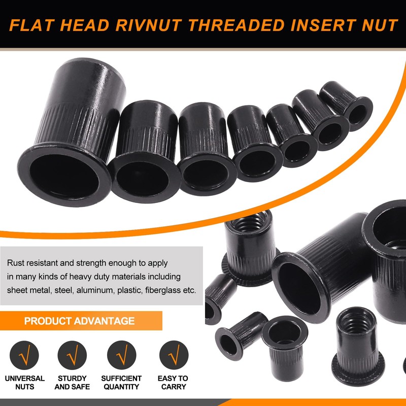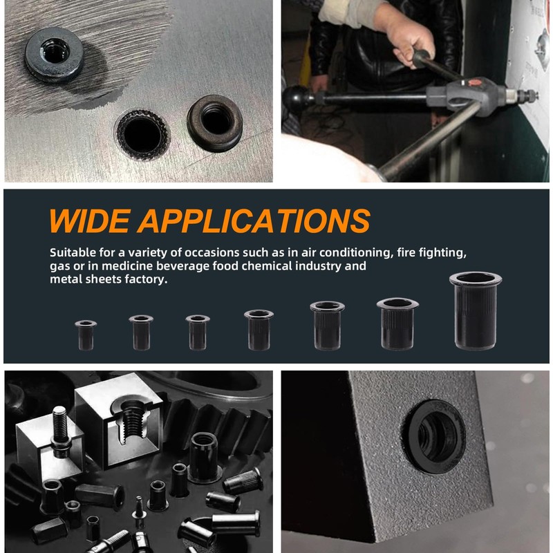 - 【 Wide Application 】--- The black rivet nut is suitable for different materials, such as metal, wood, fiberglass, and plastic. Widely used in automotive, aircraft, furniture, decoration and other electrical and industrial products.