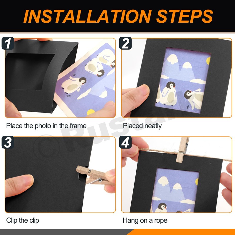 ❤You just fasten both ends of the rope to the wall and then use a small wooden clip to clip the paper frame with the photos to the rope to complete the installation.