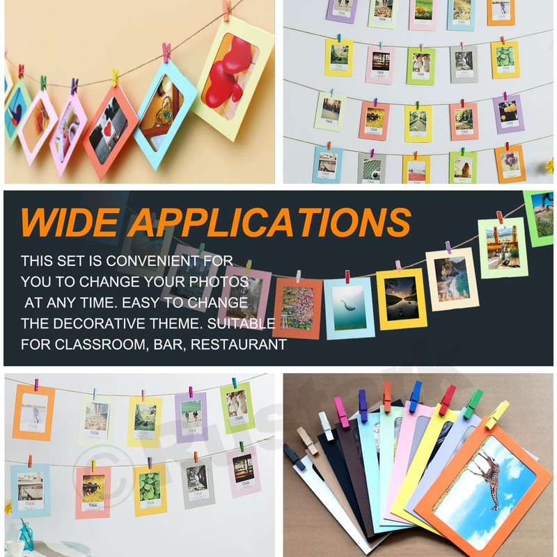 ❤You'll receive 84pcs multi-color 4.3x3.7inch/11x9.5cm paper picture frames with wood clips and jute twines. Sufficient quantity and rich sizes can meet your needs in daily life.