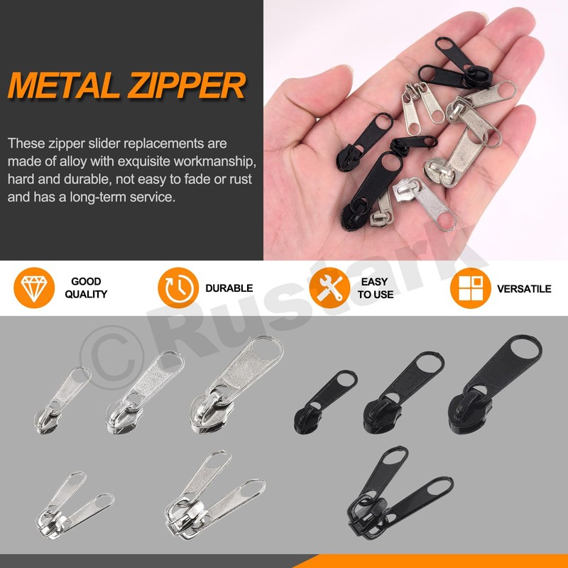 - 【 Durable & Sturdy 】 --- The zipper repair kit is made of high quality and reliable metal which have excellent plating processing, washable, smooth, polished, hard and durable with long-term service life. The zipper repair sliders feature alloy with exquisite workmanship, which are superb rust resistant, not easy to fade, not easy to break or deform. So chose the zipper repair kit is the best choice.