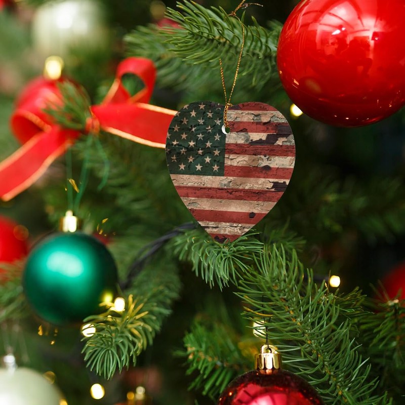 Rustic American USA Flag Distressed Heart-Shaped Porcelain Holiday Christmas ...