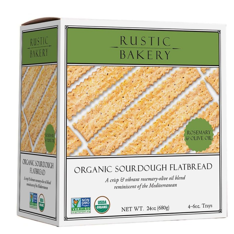 Rustic Bakery Handmade Sourdough Flatbread - Rosemary & Olive Oil - Sea Salt Charcuterie Crackers - Artisan Crackers for Cheese Platter or Snacking - Made in California - Pack of 4, 6 Oz Trays