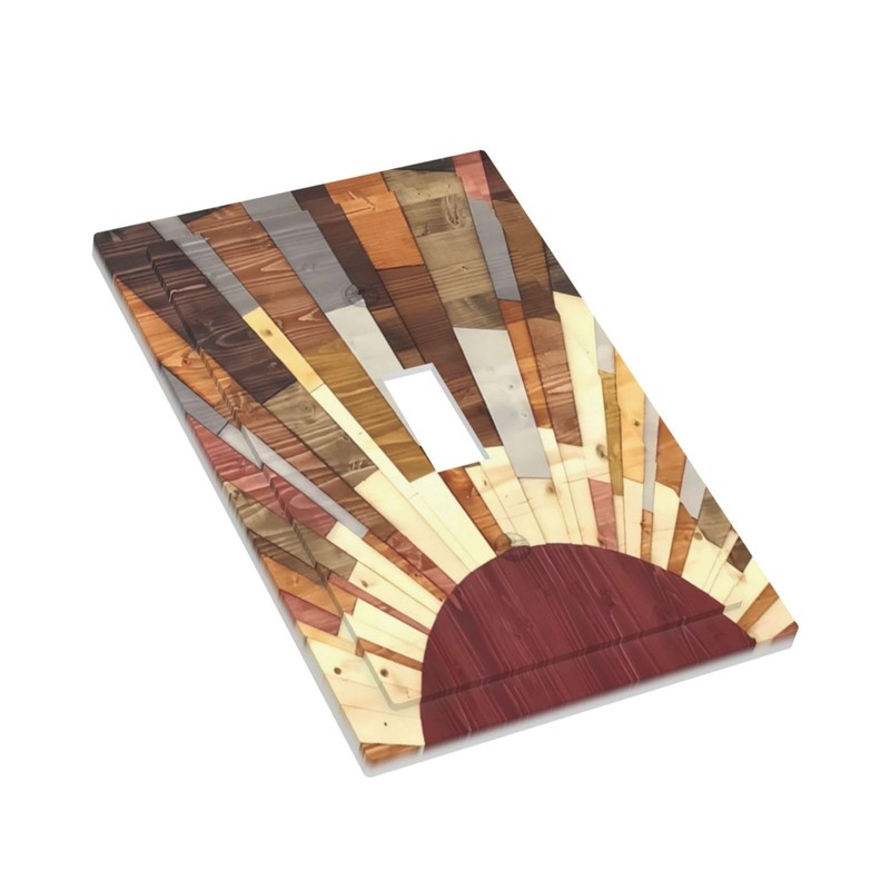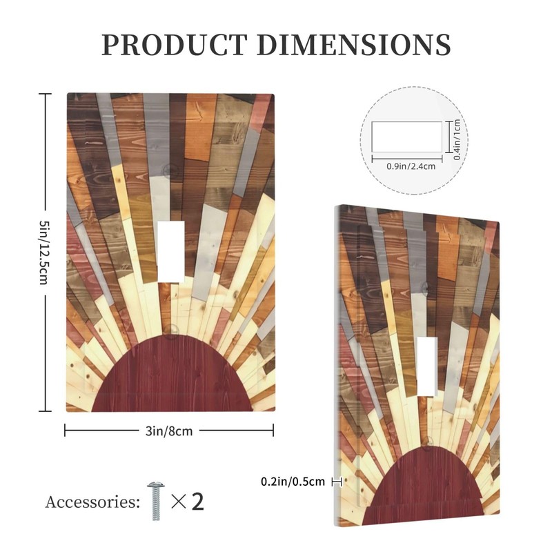 Rustic Boho Sun Light Switch Cover Decorative 1 Gang Single Toggle Cover Wall Plate Mid Size Faceplate 5" x 3" Switch Plate Cover for Electrical Kitchen Home Bedroom Bathroom