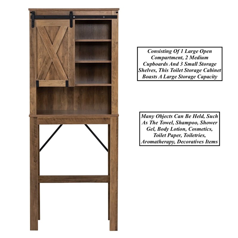 Rustic Brown Over The Toilet Bathroom Storage Cabinet with Sliding Barn Door ...
