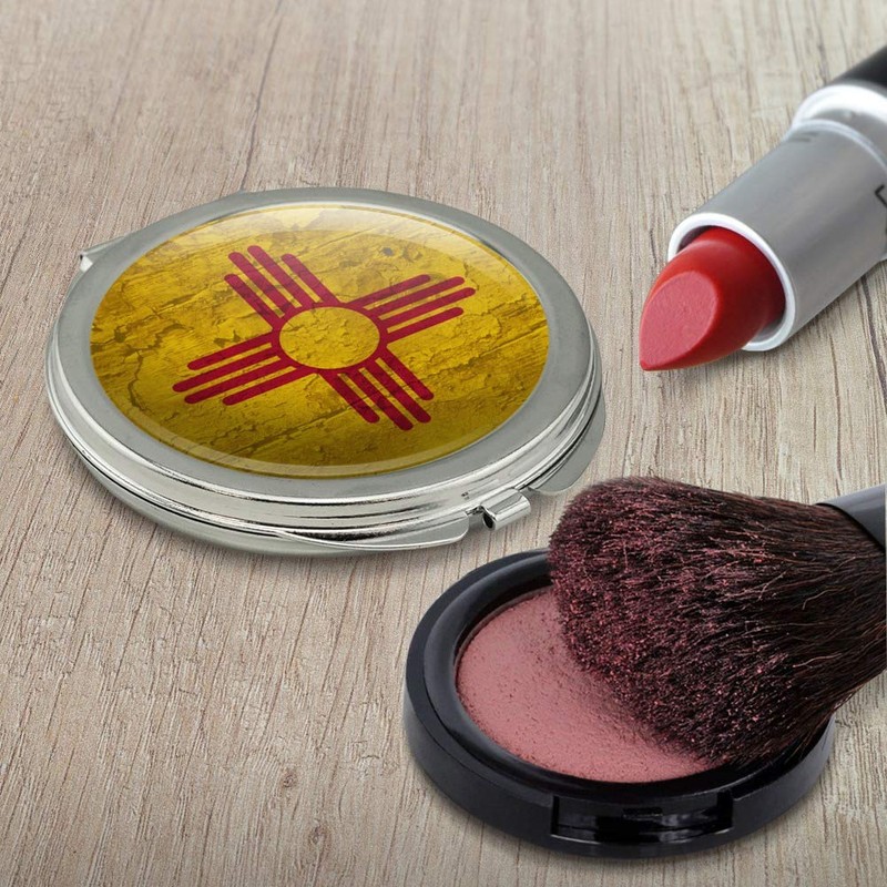 Rustic Distressed New Mexico State Flag Compact Travel Purse Handbag Makeup Mirror