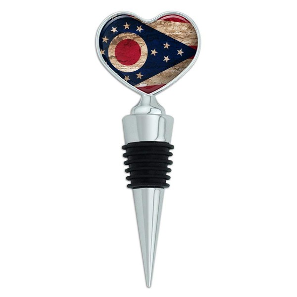 Rustic Distressed Ohio State Flag Heart Love Wine Bottle Stopper