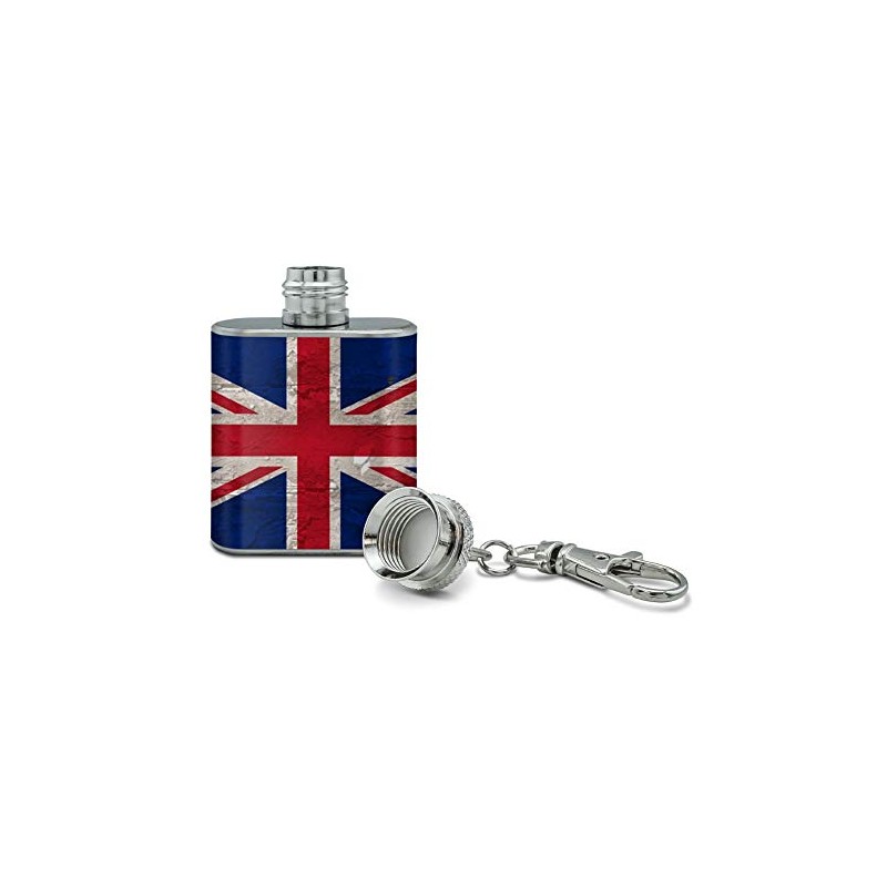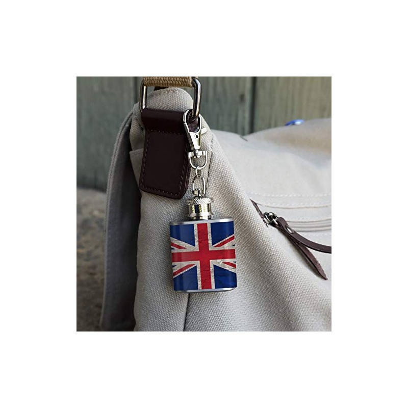 Rustic Distressed United Kingdom British Flag Stainless Steel 1oz Mini Flask Key Chain