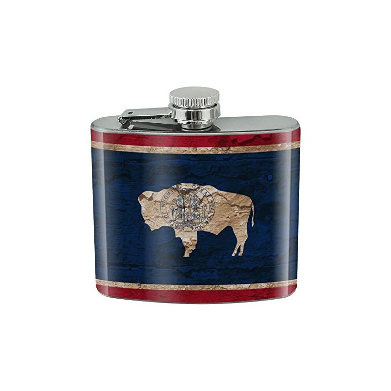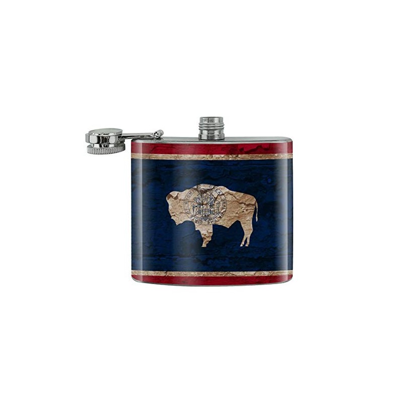 Rustic Distressed Wyoming State Flag Stainless Steel 5oz Hip Drink Kidney Flask