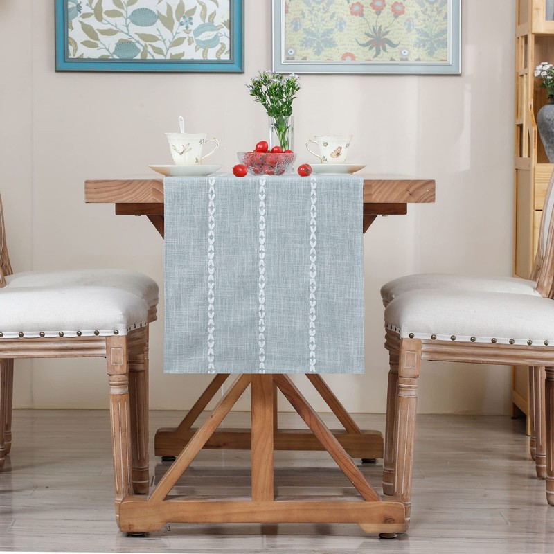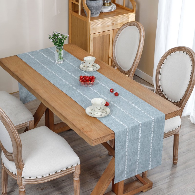 - Delicate design: The lovely table runner is designed with handmade embroidery. Wrinkle resistance and stain, without any complicated elements. Minimalist but modern, snazzy. Besides, it features delicate and exquisite stripes. Gentle colors also add to their relaxed beauty, giving your table a boho charm.