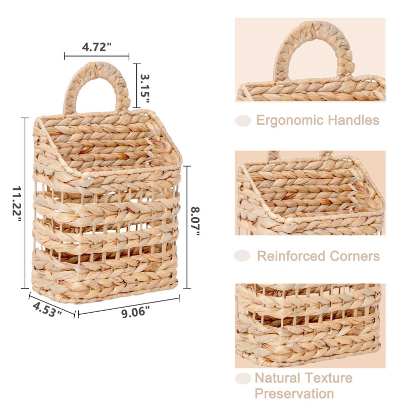 - Artisan-Crafted Water Hyacinth Design: Constructed from natural, materials, this basket is skillfully handwoven by artisans, delivering a one-of-a-kind and rustic aesthetic. Its dimensions are around 9.06 x 4.53 x 8.07-11.22 inches, with slight variations expected due to its handmade origin