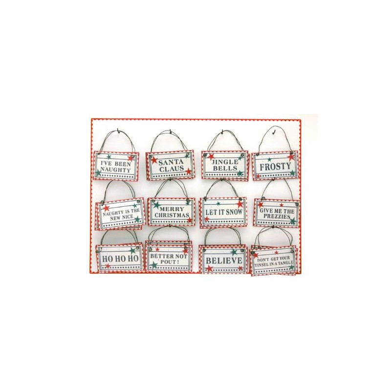 - For hanging, small metal Christmas themed sign with a special Christmas message