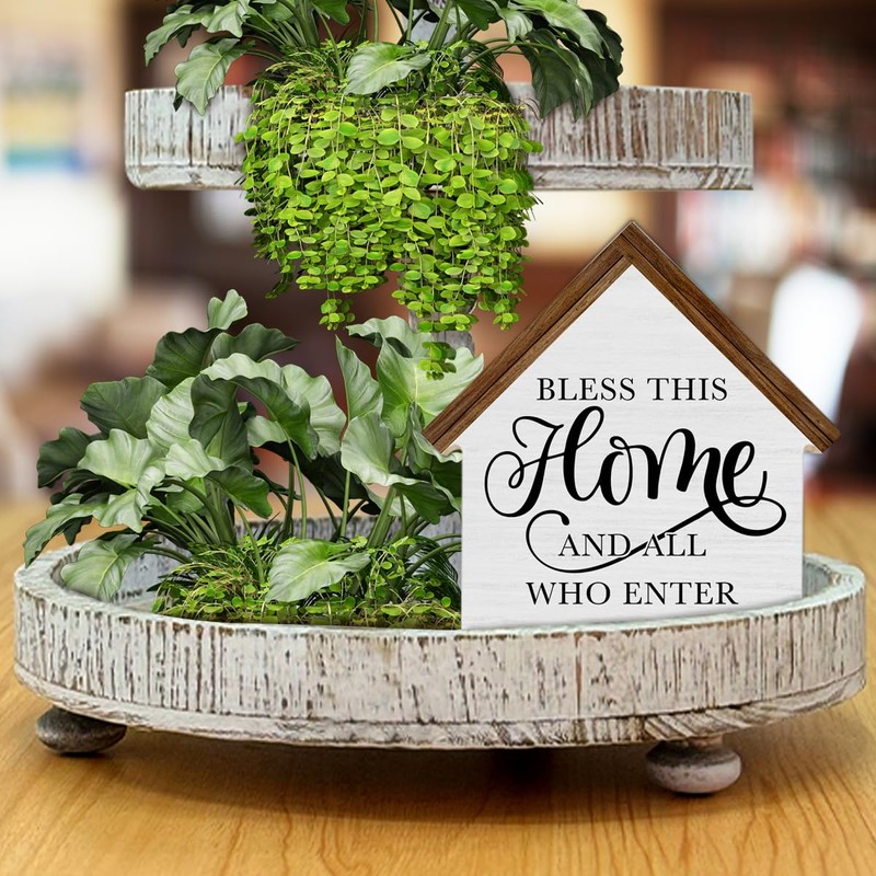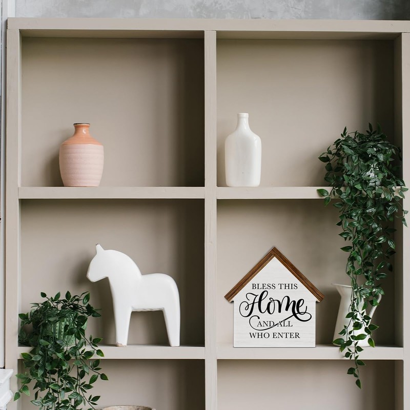 Rustic Home Decor, Bless This Home and All Who Enter House Shaped Wood Family Sign, Farmhouse Living Room Decor