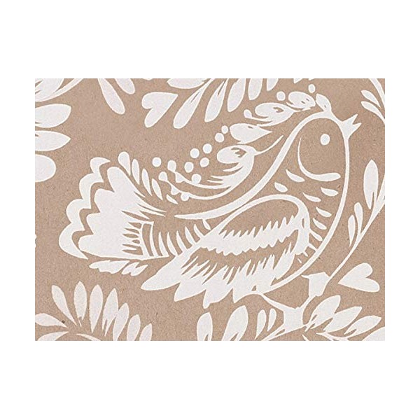 Rustic Pearl Collection KRAFT BIRD ON BRANCH WRAPPING PAPER, 24" x 20 FT ROLL - Whimsical White Birds on Kraft