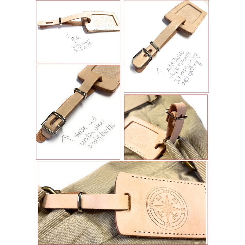 Rustic Riveted Compass Rose Tan and Green Leather Luggage Tag in Boho Style with Name Plate Bag Tag