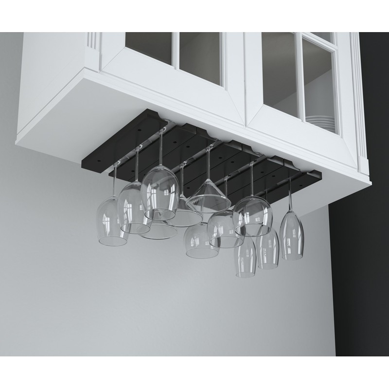 Rustic State Vigo Under Cabinet Mount Wood Stemware Rack Black 12 Inch Long