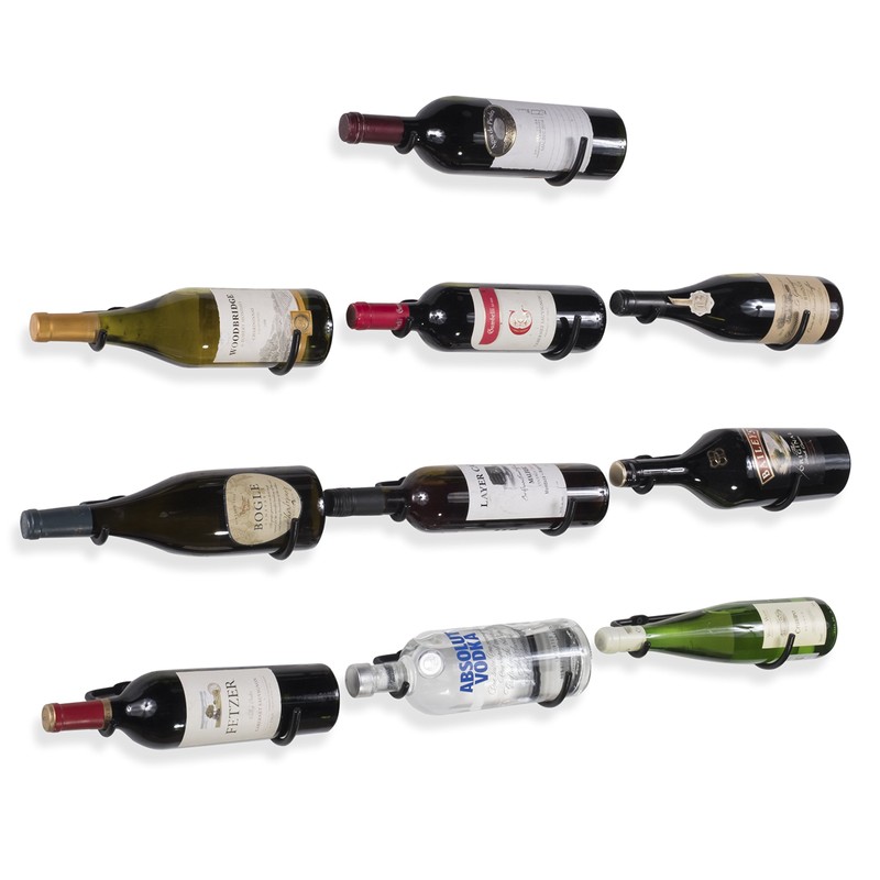 - Decorate: The set of 10 wall mounted 8 mm iron wine rack can be staggered on one wall space, used in different spaces or it can be designed to your taste. The customizable decoration will turn your wine storage into a fun and more affordable storage solution.