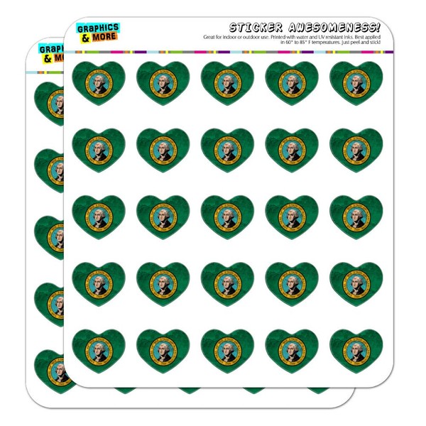 Rustic Washington State Flag Distressed USA Heart Shaped Planner Calendar Scrapbook Craft Stickers