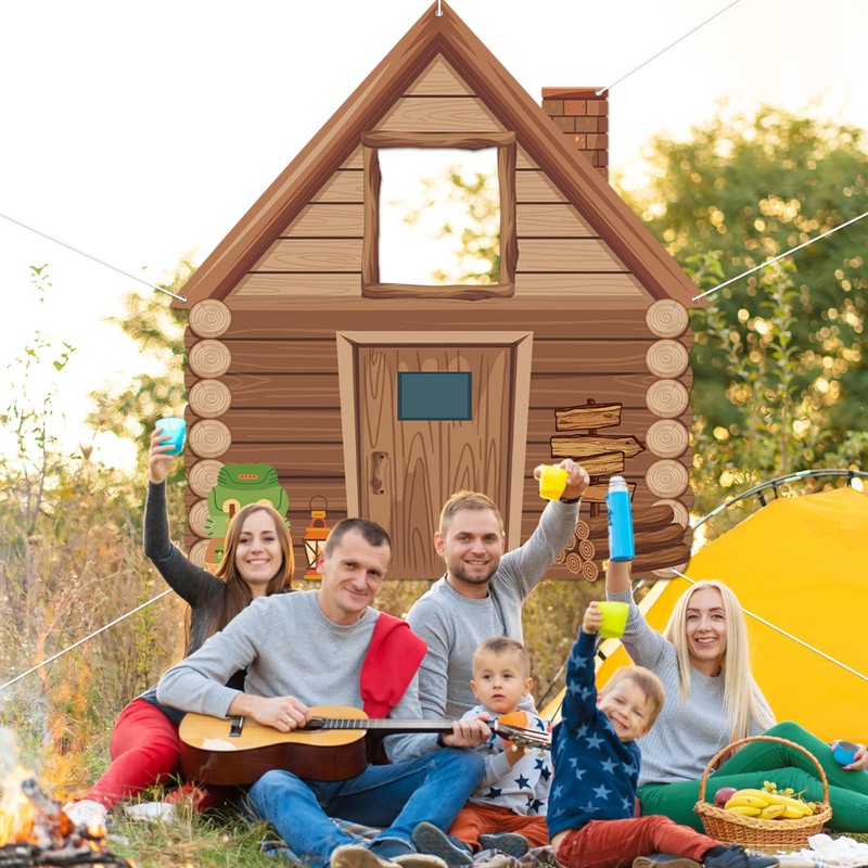 Featuring an eye-catching rustic wooden cabin design, this backdrop brings a touch of nature and warmth to your photos. The cabin shape, complete with a bright window cutout, adds a playful and inviting atmosphere to any celebration.