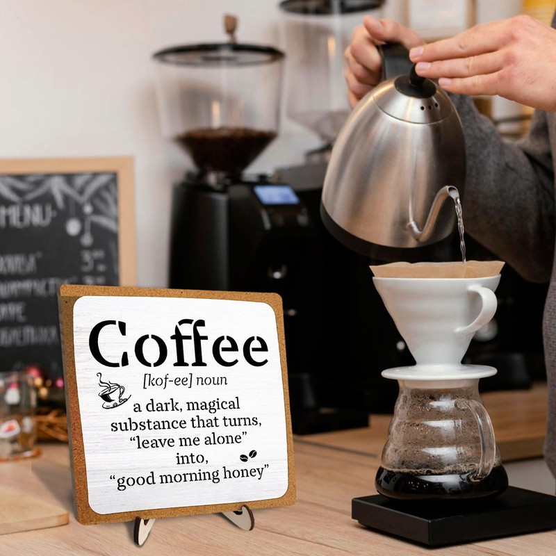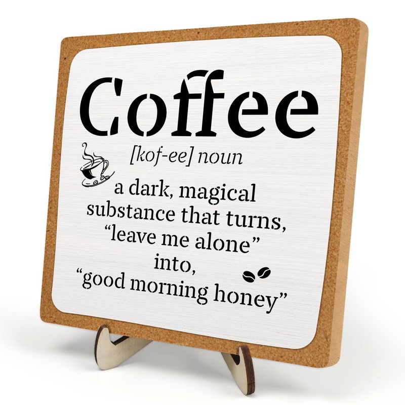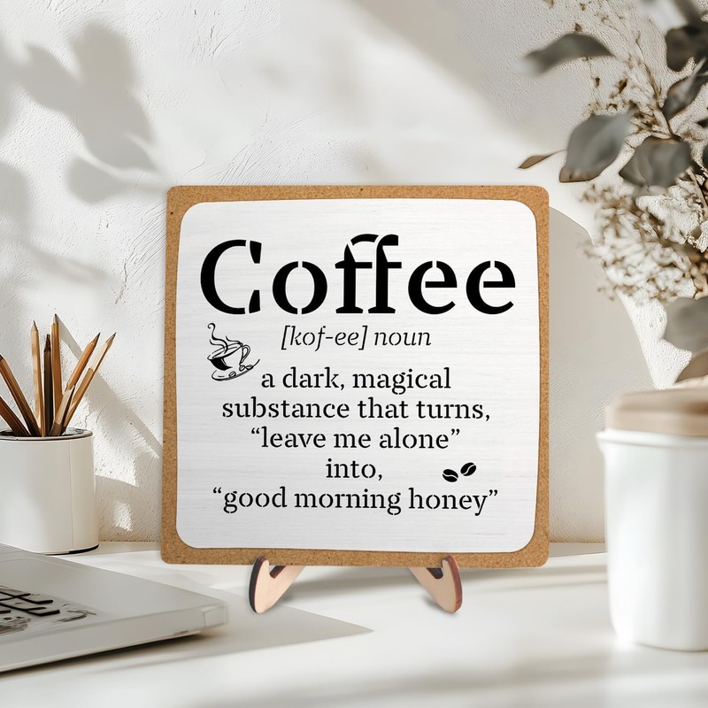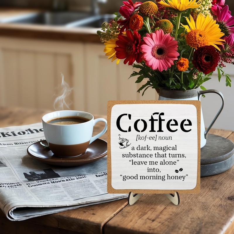 Rustic Wooden Plaque Coffee Sign - Funny Farmhouse Coffee Bar Decor, 5.9 x 5.9Inch