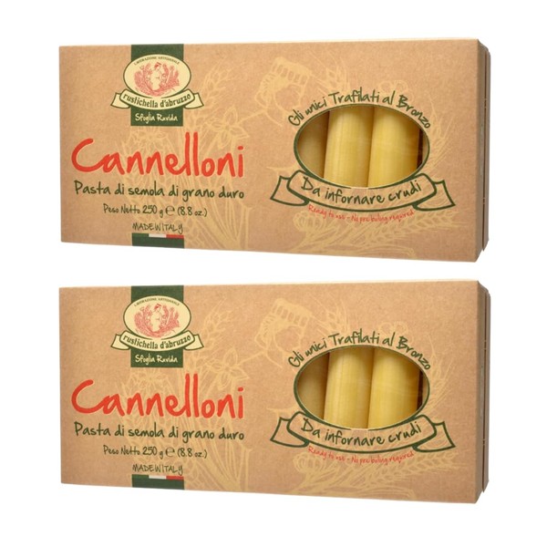 Rustichella d'Abruzzo Cannelloni (2 Pack) - 20 Large Pasta Tubes for Stuffing Per Package - Classic Durum Wheat Pasta from Italy, Perfect for Baking