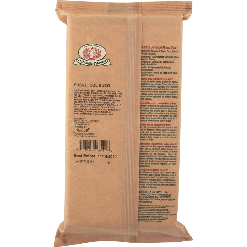 Rustichella d'Abruzzo Fusilli col Buco, 17.6 oz