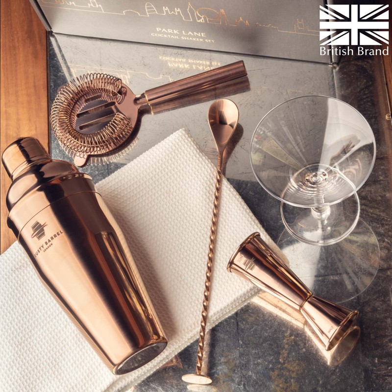 Rusty Barrel Large Manhattan Style Stainless Steel Shaker, Muddler, Strainer, Bar Measure, Pourer, Spoon & Recipe Booklet, Copper, 2