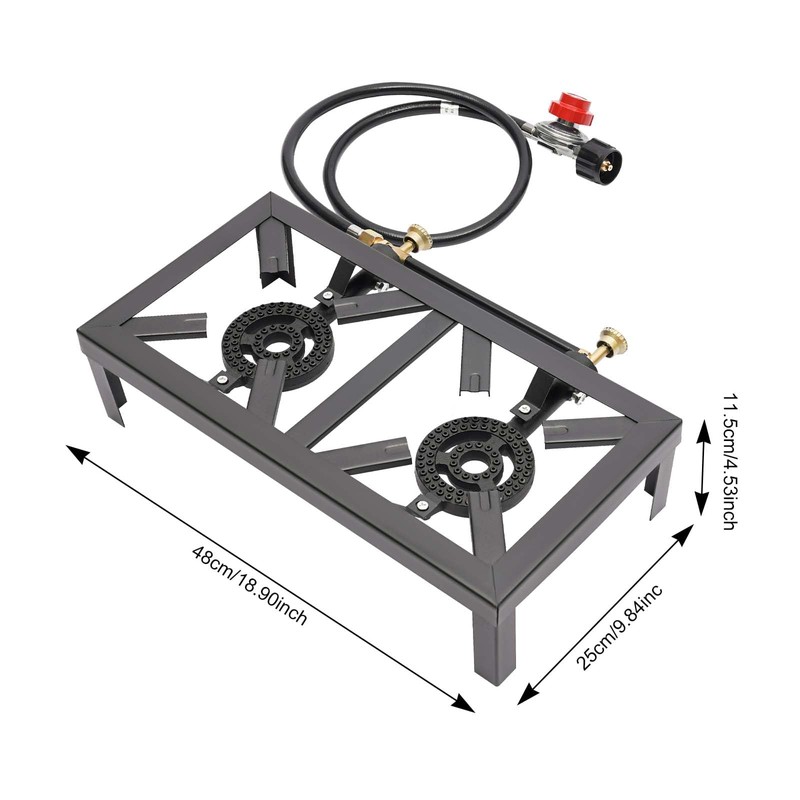 • 【Sturdy and durable】This 2 burner gas stove is made of hard cast iron with plastic spraying technology, making it resistant to heat, corrosion, rust, and deformation and suitable for outdoor kitchens, barbecue islands, and various weather conditions.