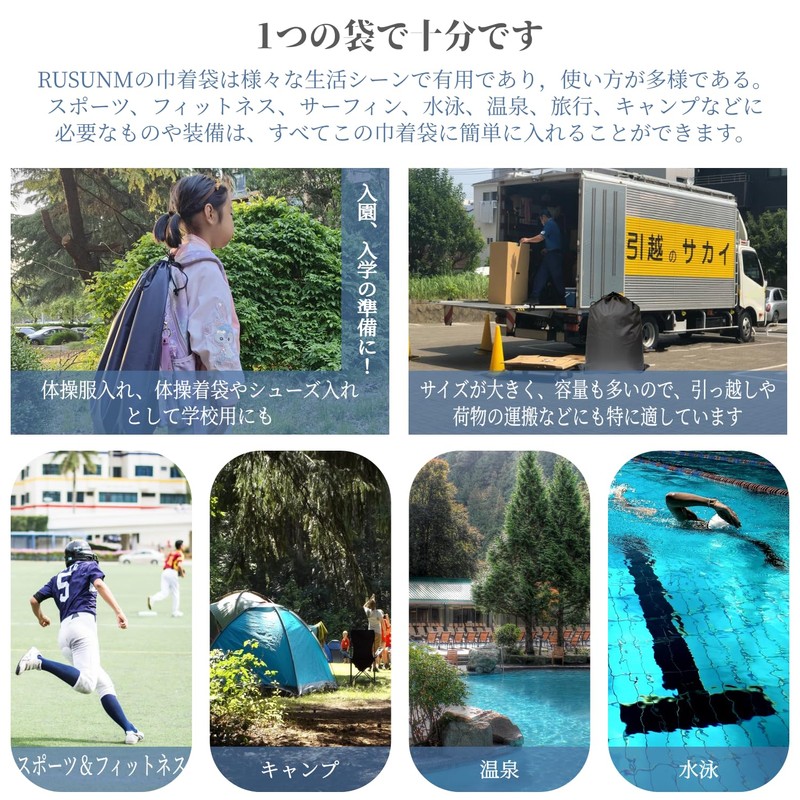 - Multi-functional: RUSUNM drawstring bags are useful in a variety of situations, and can be used in a variety of ways. This drawstring bag is especially suitable for home storage, exercise, sports, exercise, camping, hot spring, leisure, travel, swimming, sleepovers, moving, laundry, etc