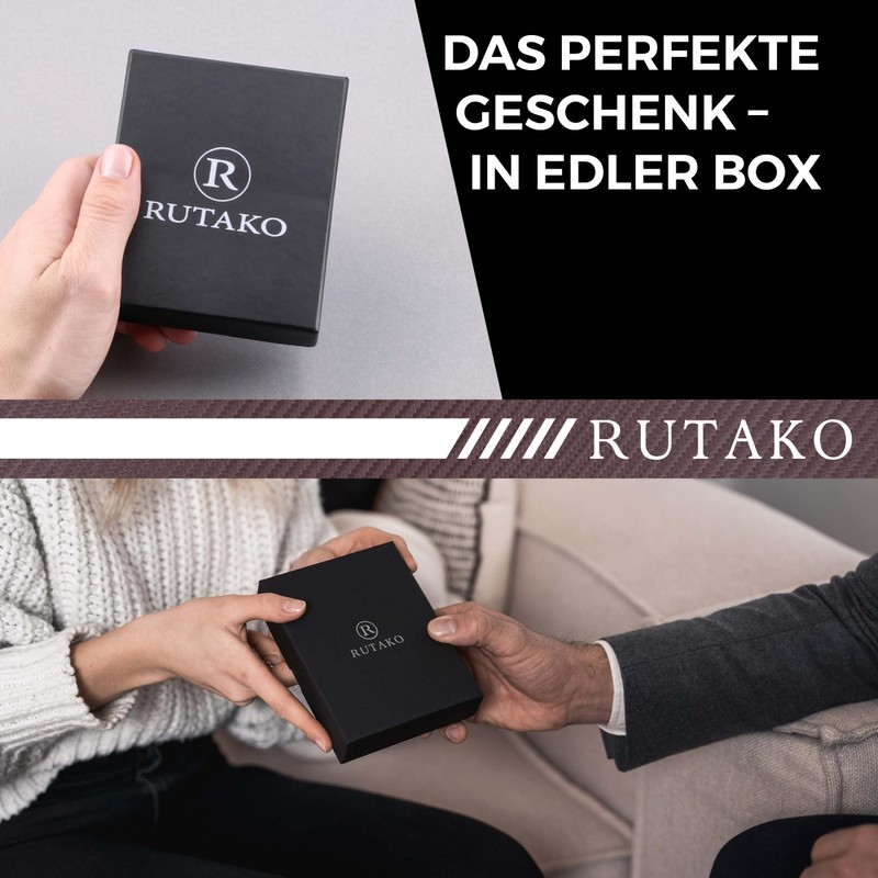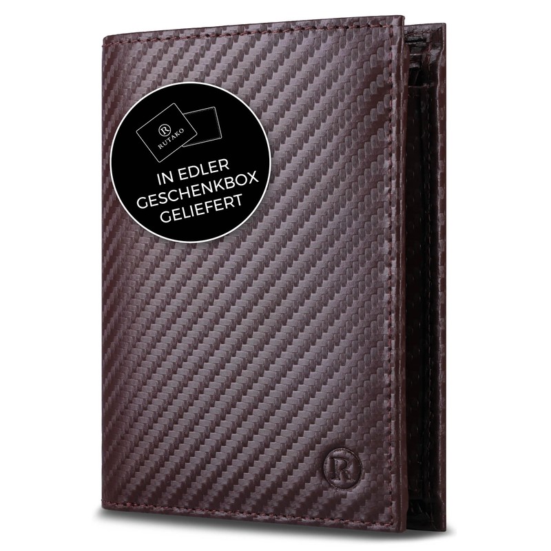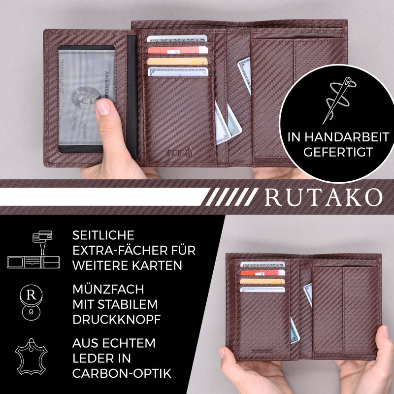 RUTAKO Men's Leather Wallet with RFID Protection, Large Wallet with Coin Compartment, 12 Compartments, Genuine Leather Wallet for Men, Wallet, Carbon brown, Portrait