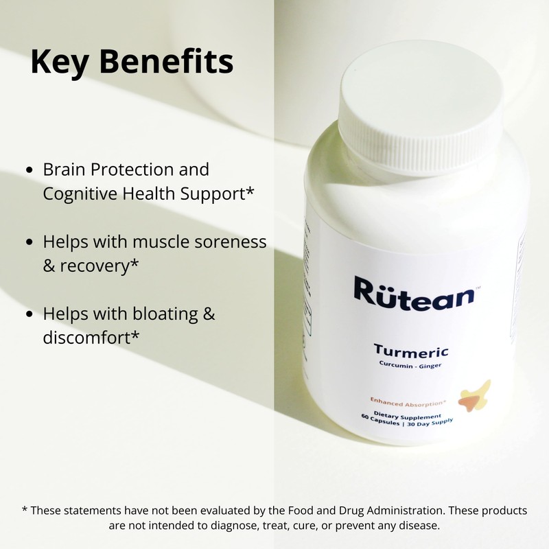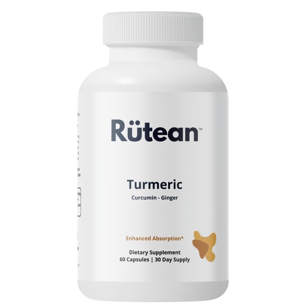 Rütean Turmeric Capsules - High Potency Turmeric Curcumin Capsules with Ginger & Black Pepper - Joint Support - 60 Capsules