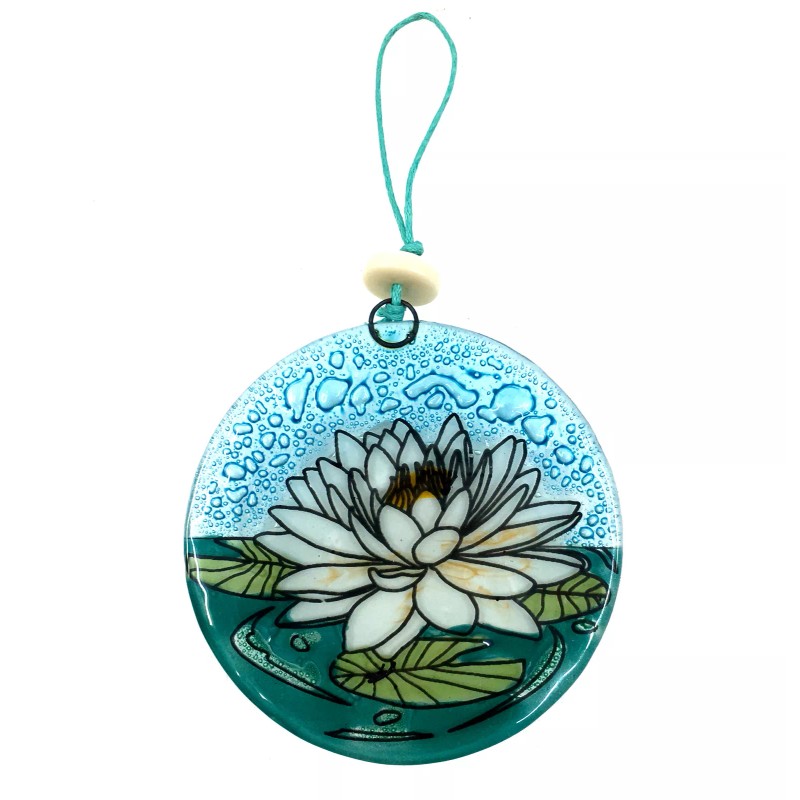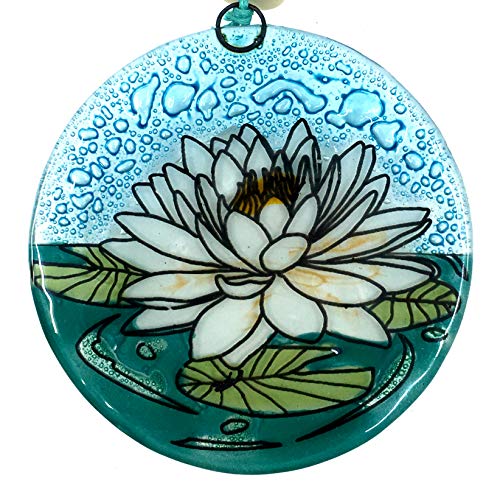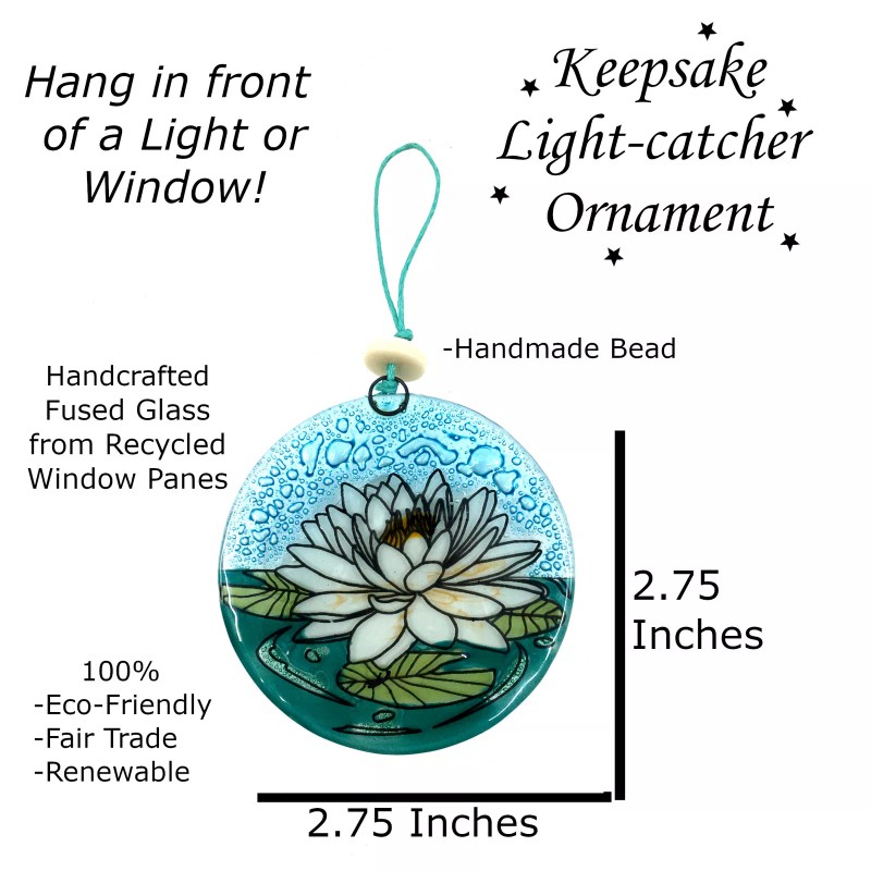Ruth and Wilde White Lotus Flower Christmas Tree Ornament - Art Glass Light Catcher