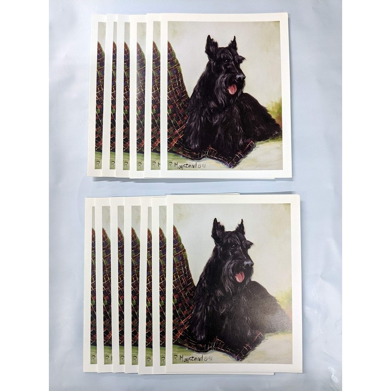 Ruth Maystead's paintings of dogs have captivated breed lovers for years. She brings her finest renderings to our note cards fitting of the person who still believes in the hand written gesture. A wonderful gift for the Scottish Terrier lover!*Fold-over cards measure 4.25" x 5.5"*Blank inside*. Set of 12 with accompanying white envelopes* Printed in the USA