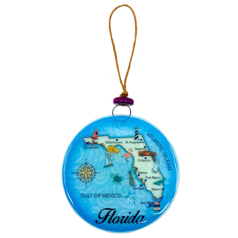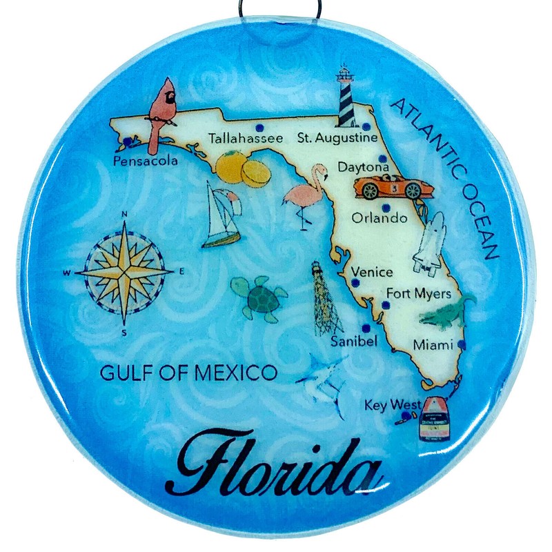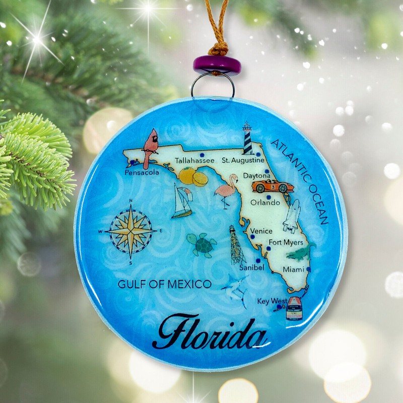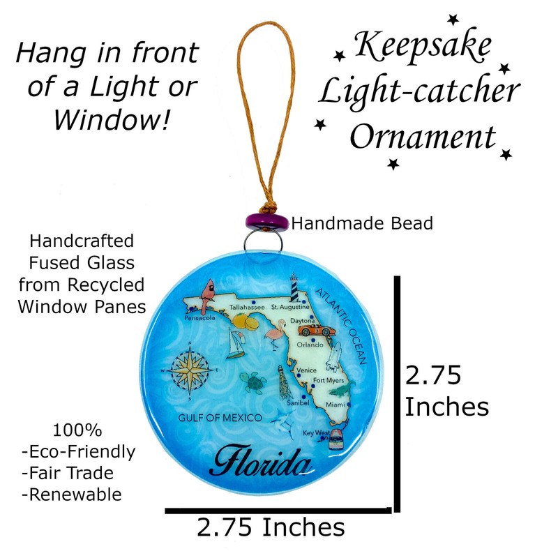 Ruth's Ethical Goods Florida Map Christmas Tree Ornament - Art Glass Light Catcher Gift