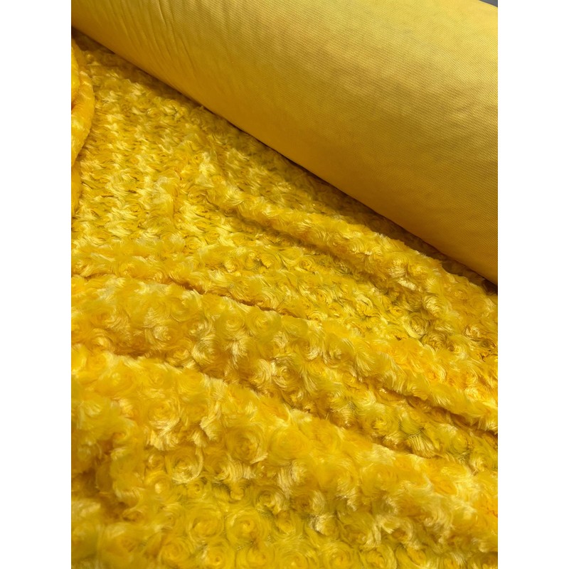 Ruth Yellow Cuddle Minky Rosette Soft Faux Fur Fabric by The Yard - 10083