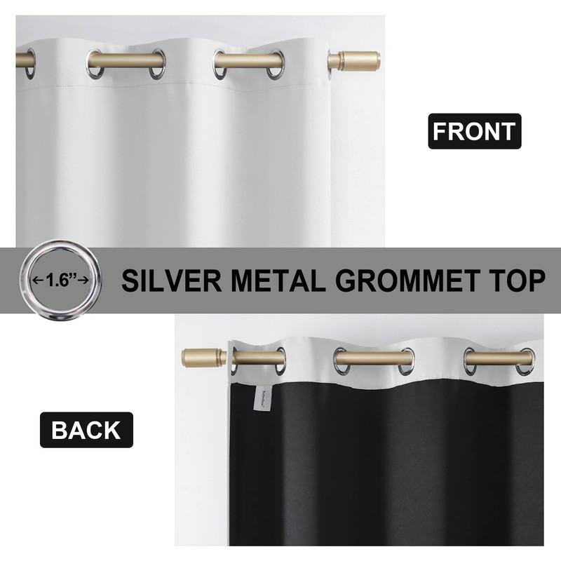 - Grommet Top: RUTTERLLOW 100% blackout curtains have 8 shiny grommets top, 1.6” inner diameter each, fit standard size curtains rod, look great when you hung on coordinating metal rod.