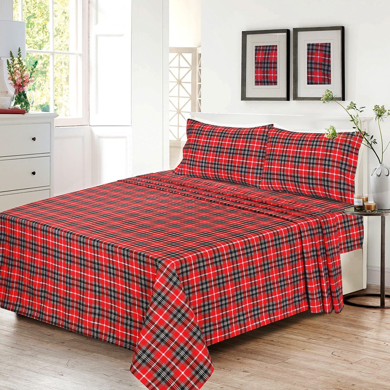 - Unique Design: This velvety soft flannel sheet set presents a combination of Red and Grey Plaids on Red background. Available in various colors and luxurious designs.